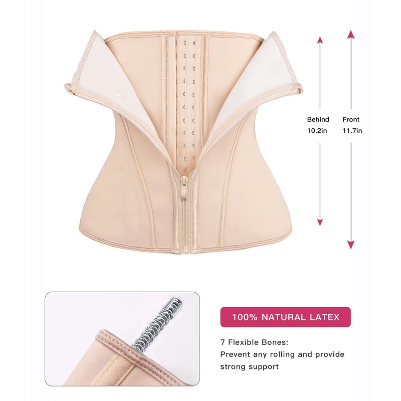 - INSTANTLY SHAPING: The waist trainer for women features 3 rows of hooks along with a metal zipper on the front that can be adjusted for a secure fit and to double-control your waist. It provides instant shaping and slimming of your body. The hooks and zipper are extra robust, capable of providing support during any sports or workout exercises without accidental breakage. It can be worn as a faja body shaper and is also perfect for tummy control as shapewear.