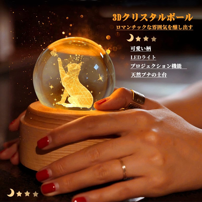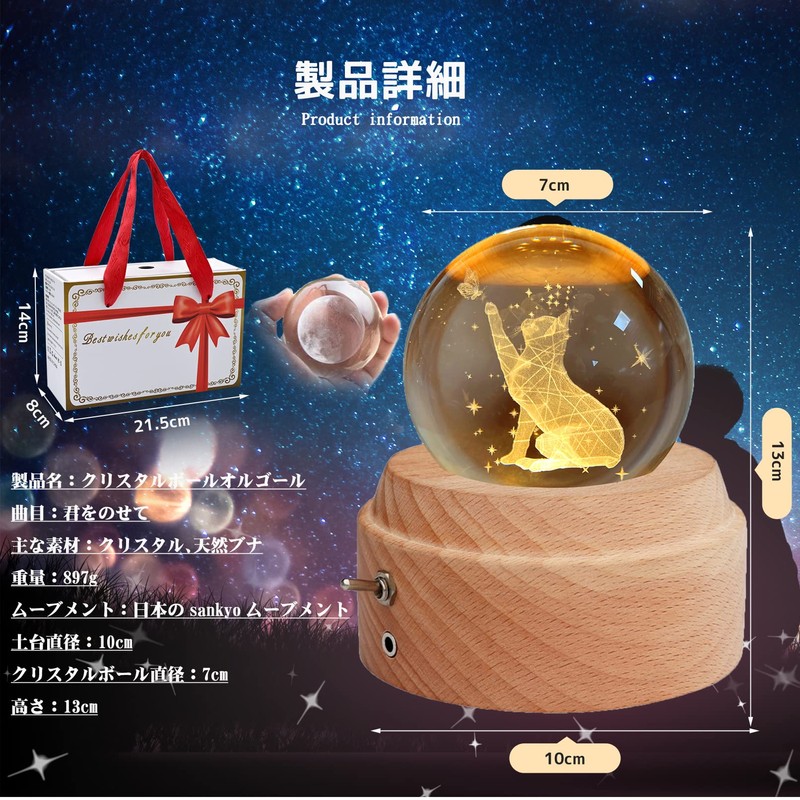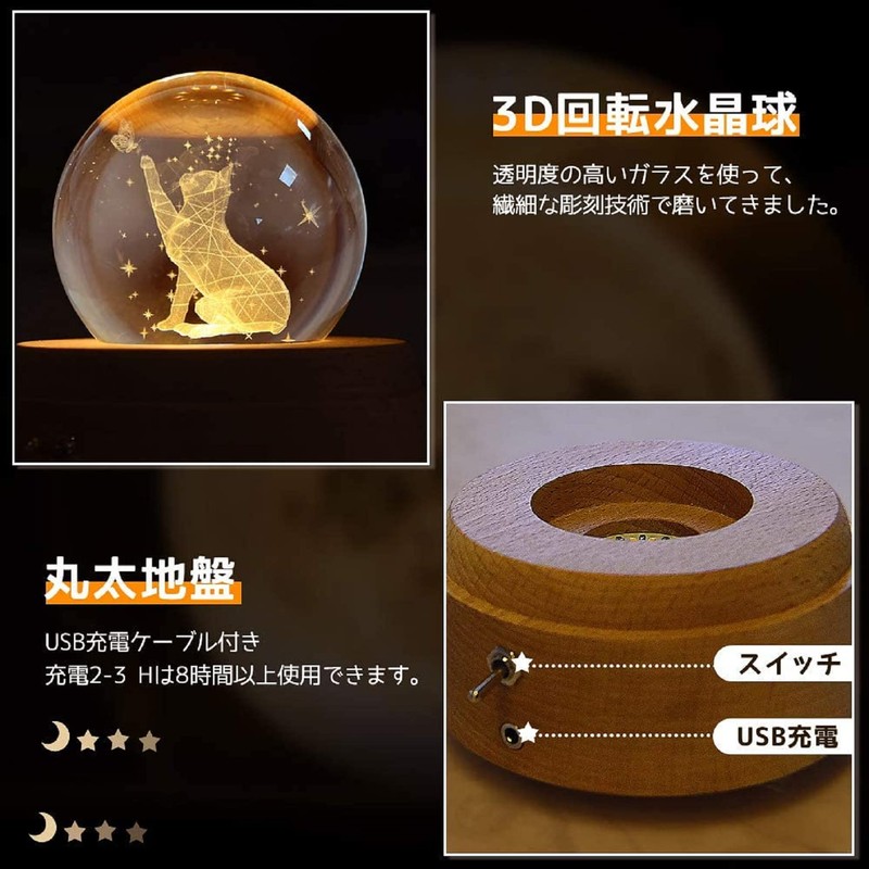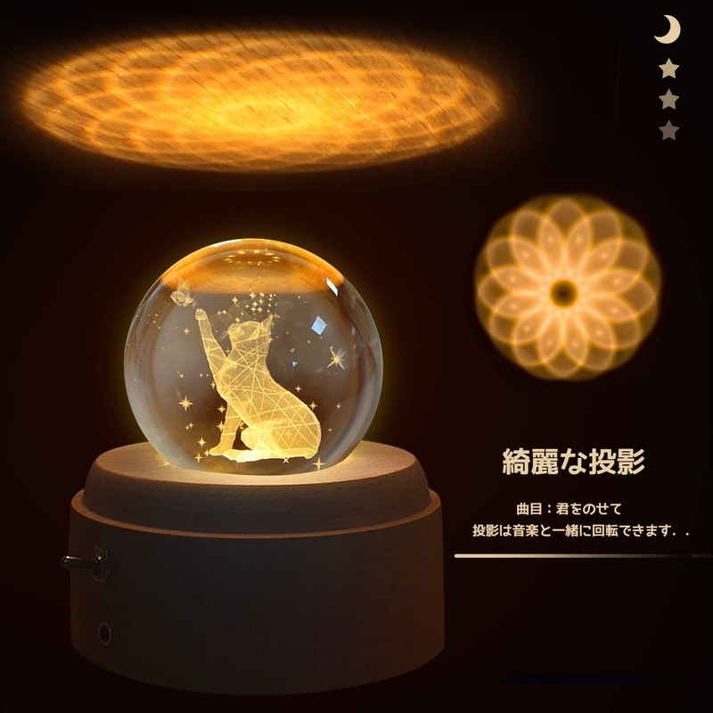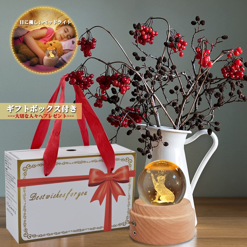 YIBAIKE Gift Box, Musical Box, Birthday Gift, Genuine, Cat Crystal, Ball, Indirect Lighting, LED Light, USB Rechargeable, Projection Function, Wooden Base, Bedside Lamp, Romantic Atmosphere, Interior Goods, Birthday / Mother's Day, Weddings, Anniversarie