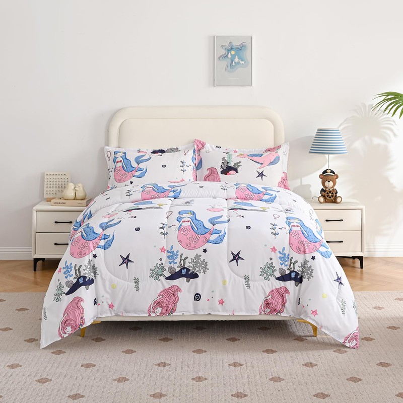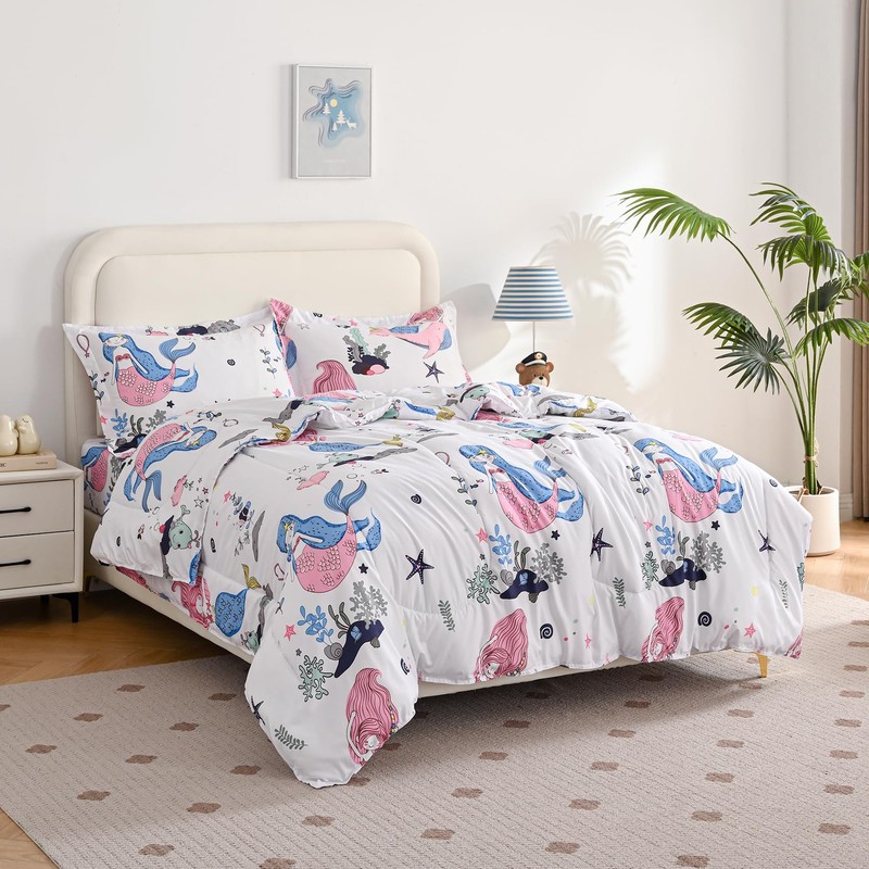 Yibeizi Mermaid Comforter Set for Girls Full Size, Kids Cute Ocean Patterned ...