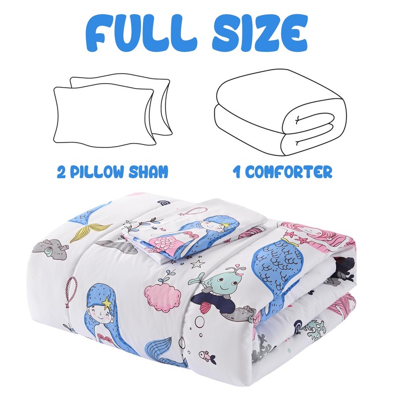 • 3 Pieces Comforter Set - The full mermaid bedding set includes 1 comforter (79" x 90") and 2 pillow sham (20" x 26") with 2 inch flange.