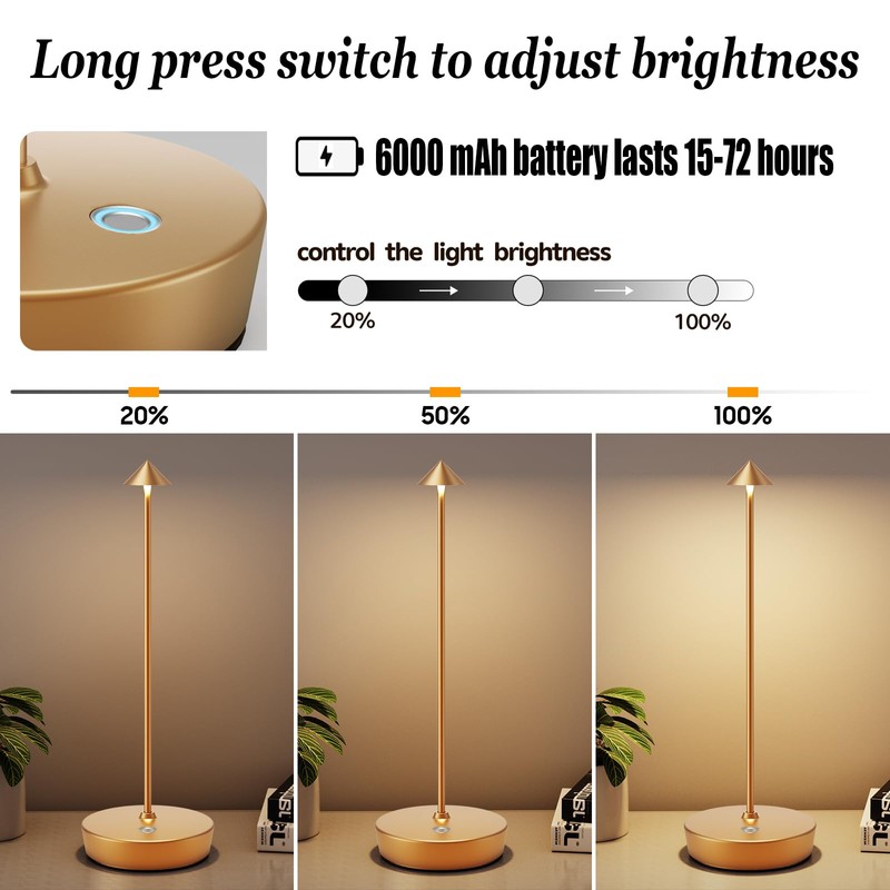 - 【Cordless table lamps】Elevate your space with our Cordless desk lamp's sleek aluminum alloy body. Its premium construction not only adds a touch of elegance but also ensures durability, making it a long-lasting addition to your home or office decor. Our Cordless desk lamp features a convenient Type-C charging port, allowing for fast and effortless charging. you're all set to enjoy the convenience of a cordless lighting experience.