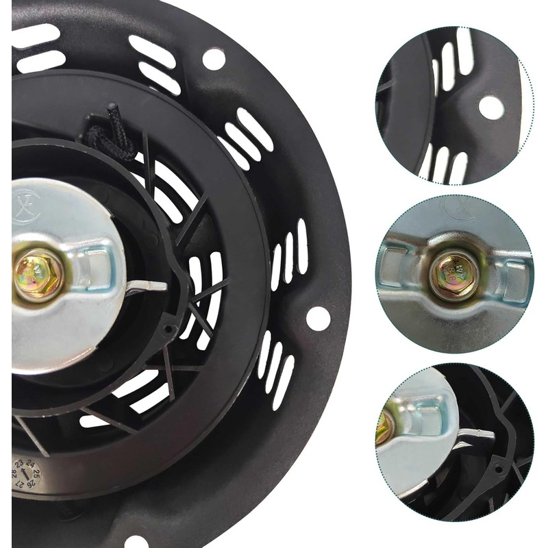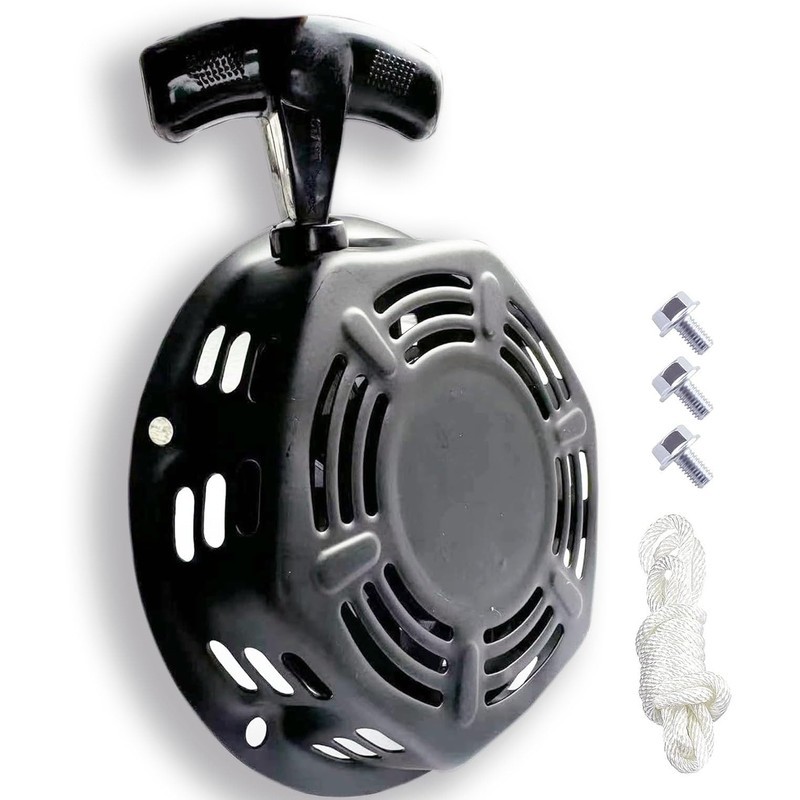 - Package: 1×Recoil Pull starter, 1×Pull Rope (145cm) and 3×Screw Bolts. (Note: Applies only to devices with 3 screw holes. Please check the pawl and rachet type, nut hole positions and product sizes)