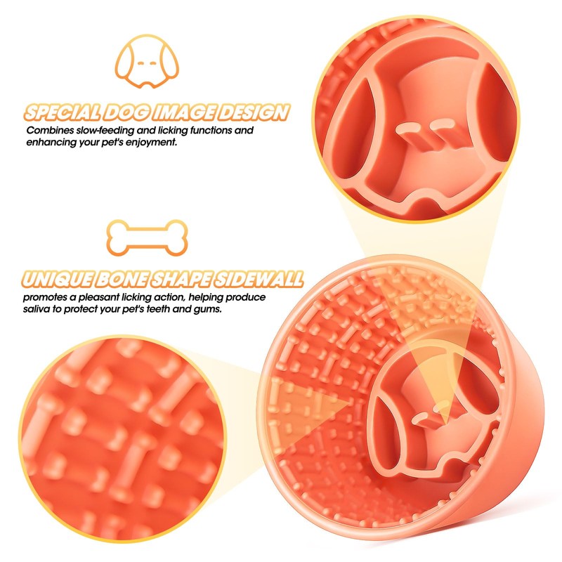- Clean tongue surface, promote oral health: our dog lick bowl features textured surfaces that encourage licking, leading to increased saliva production and better dental health. At the same time, This slow feeder bowl lick mat promotes slow feeding and repetitive licking, reduces anxiety,boredom and destructive.