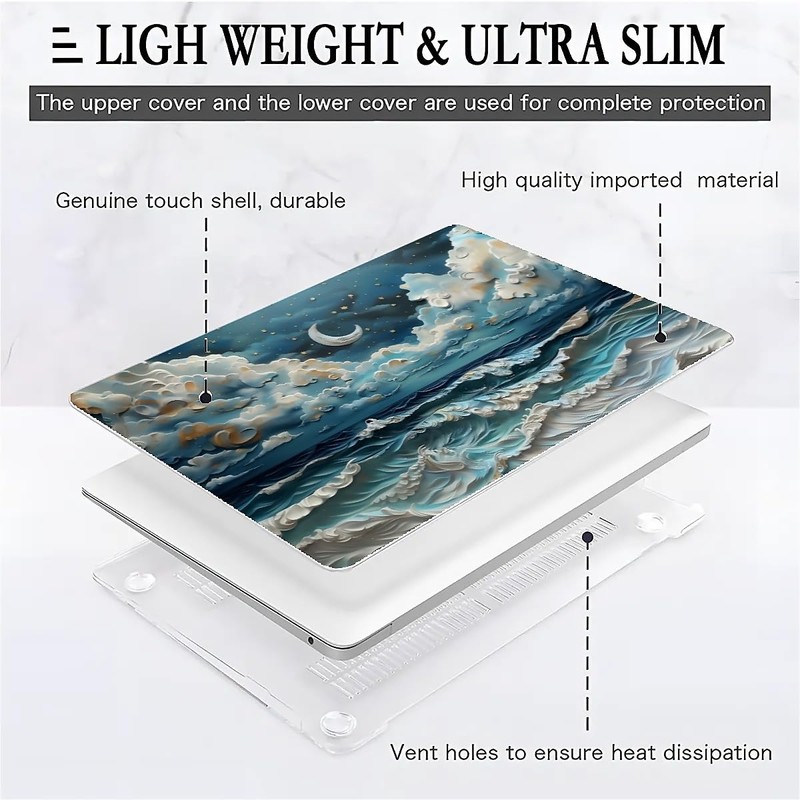 Our laptop Hard Shellanti-slip silicone feet at the bottom shell, it can keep your device firmly in place all the time ,Featuring two rows of bottom ventilation, allowing safe heat disbursement to keep your device cool ,Featuring all-inclusive design to fully protect your device from drops, downs, scratches, etc from daily using.