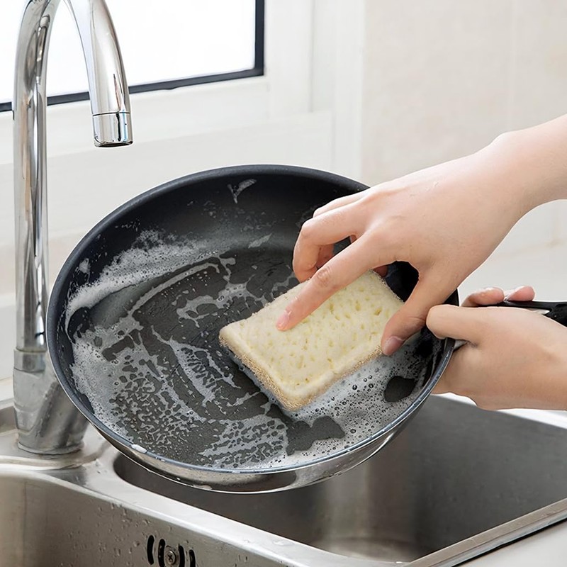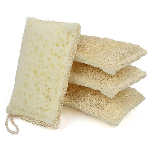 - DUAL-SIDED:Our sponges feature a dual-sided design for versatile cleaning. One side is made from natural loofah for effective scrubbing, and the other side made from soft plant-based cellulose is perfect for gentle cleaning on delicate surfaces. This ensures no scratches on your dishes or cookware, meeting your various kitchen cleaning needs.