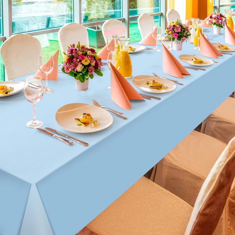 - Quality Material:our light blue tablecloth are made of high quality plastic material,it is waterproof,sturdy,dirt resistant and has a smooth surface,not easy to damage and can keep stains away,easier to clean.And light weight makes it easy to use indoors and outdoors.