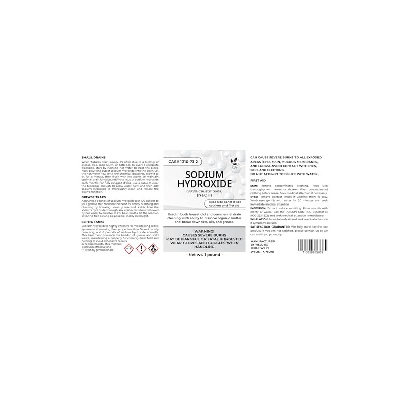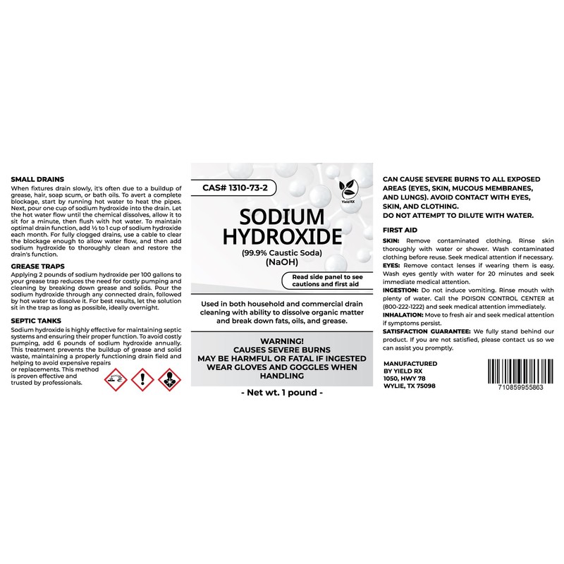 Yield RX Sodium Hydroxide (Caustic Soda) - Ultimate Drain Opener and Cleaner Chemical Solution