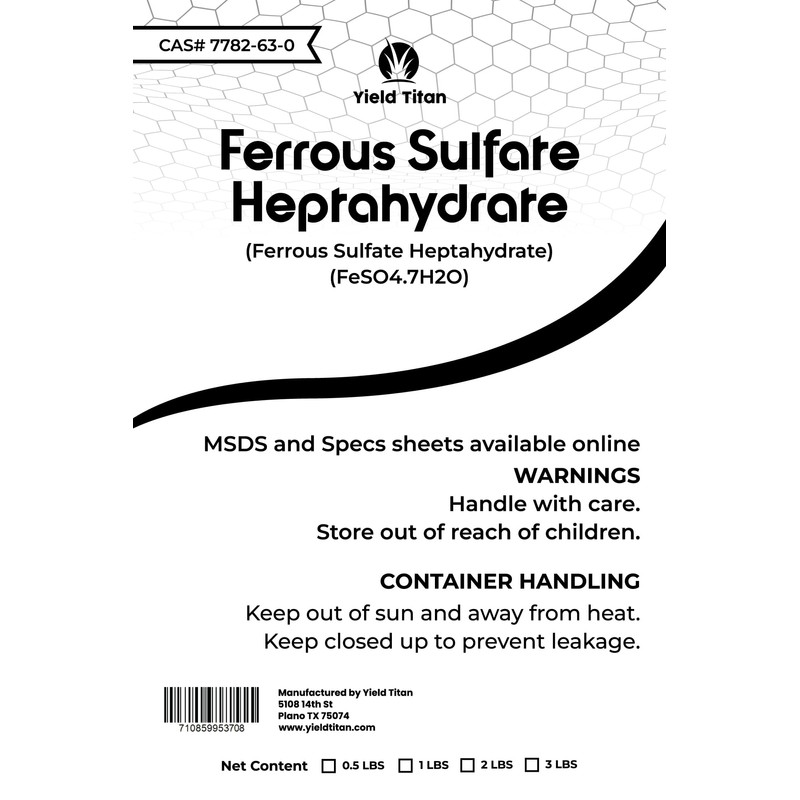 Yield Titan Ferrous Sulfate Heptahydrate (FeSO4·7H2O) - Chemical (0.5lb)