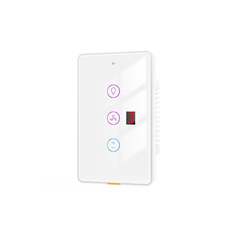 - Memory Feature: After a power failure, the smart fan light switch restores to its previous state. It also features a red indicator light (purple when on, blue when off) and a fluorescent strip at the bottom for easy nighttime location, emitting a gentle glow that won't disrupt your sleep. The indicator light can be turned off via the Smart Life app.