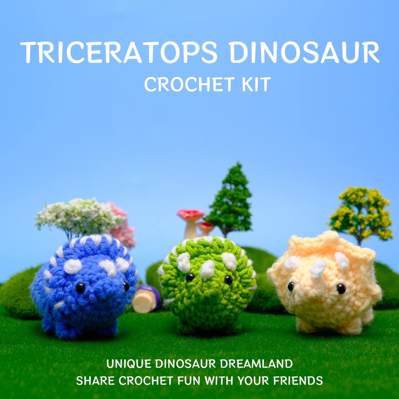- Perfect Dinosaur Crochet Kit: Discover our triceratops' fun and unique patterns with our animal crochet kit. These little stuffed cuties are unlike any other dinosaurs out there, making them a great gift for birthdays, Christmas, New Year, Valentine's Day, or any other holiday. Not only will you master new skills by creating them, but you'll also have the opportunity to share them with your loved ones.