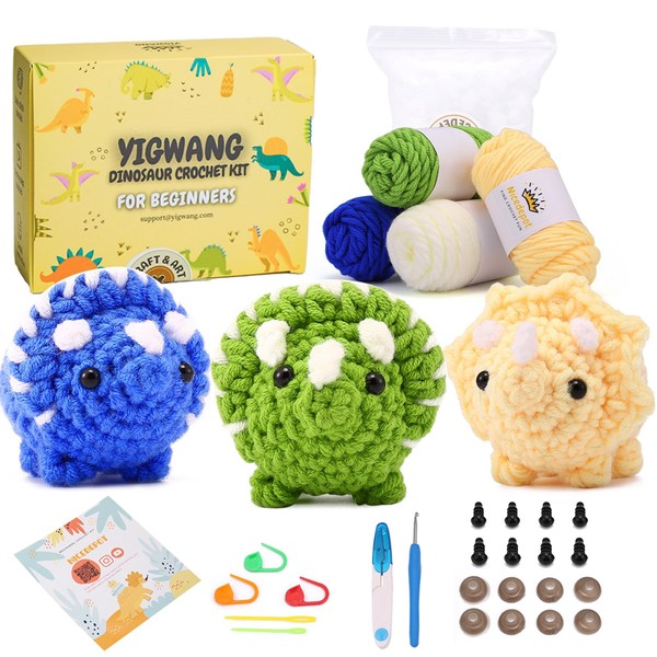 YIGWANG Crochet Kit for Beginners, Learn to Crochet Animal Kit for Kids Adults,Complete Crochet Stater Kits with Step-by-Step Video Tutorials and Instructions, Triceratops Amigurumi
