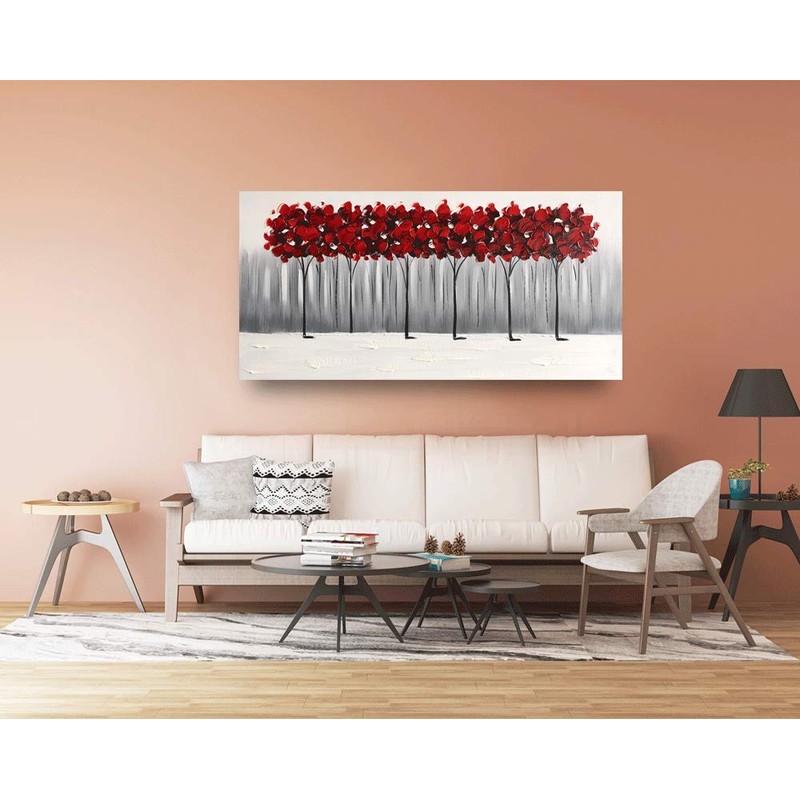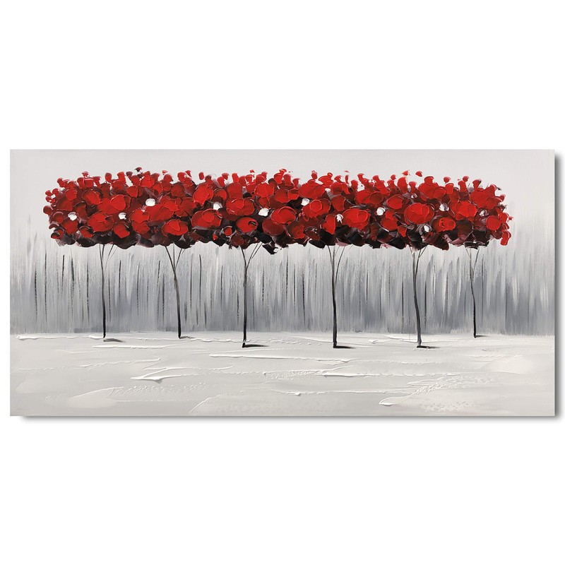 Yihui Arts Abstract Forest Painting - Red Tree Canvas Wall Art, Hand Painted ...