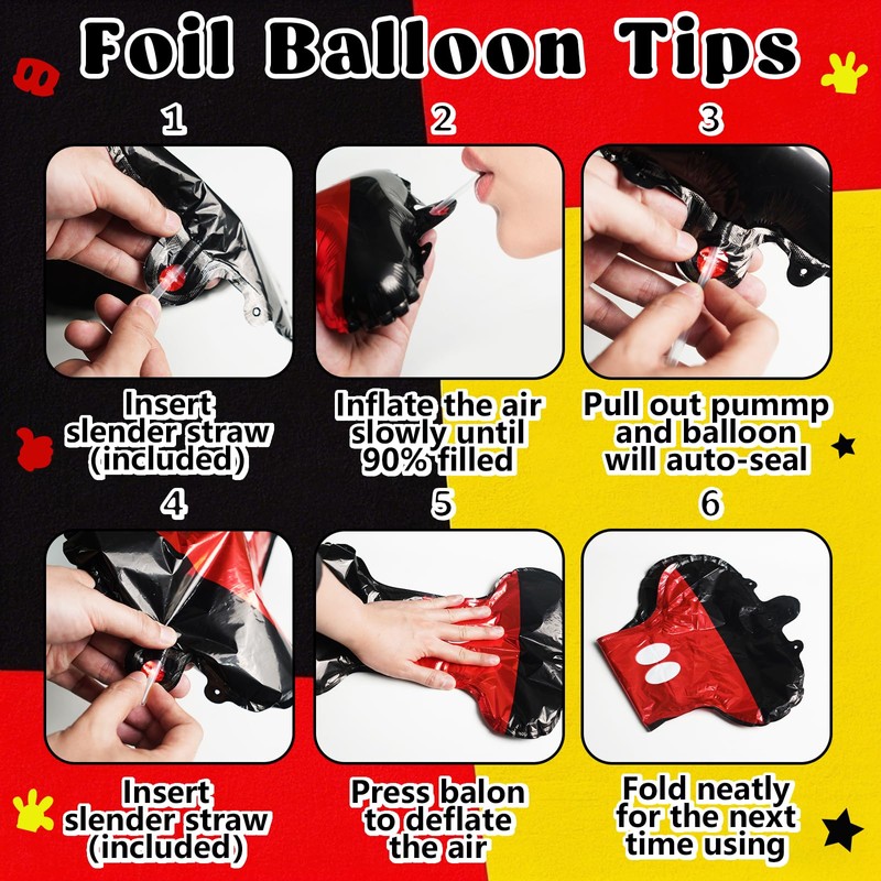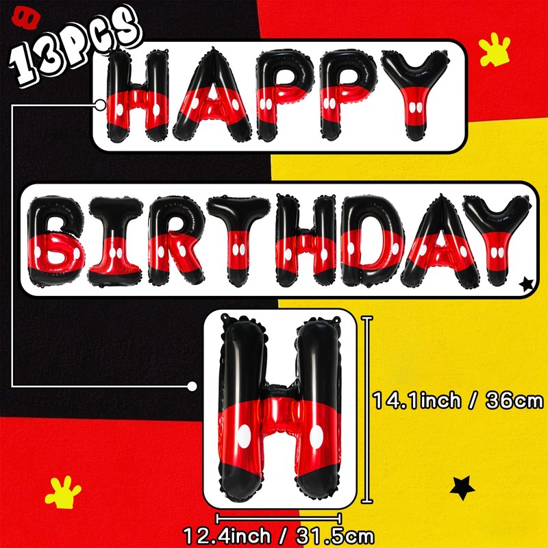 - High Quality:Designed with Mickey color scheme, combining children's favorite Mickey elements with letters. The aluminum foil balloons have clear patterns and bright colors, made of high-quality aluminum foil balloons, and are safe. Self sealing helps balloons stay in place for almost a week without leaking or losing air, and is loved by children.