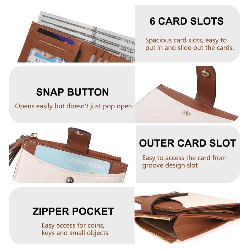 - Small Wallets Woman with Tassle : With 6 RFID-block credit card slots, 1 ID window and 1 widened zipper pocket for the coins and keys, this small compact wallet for women can meet all your daily demands.