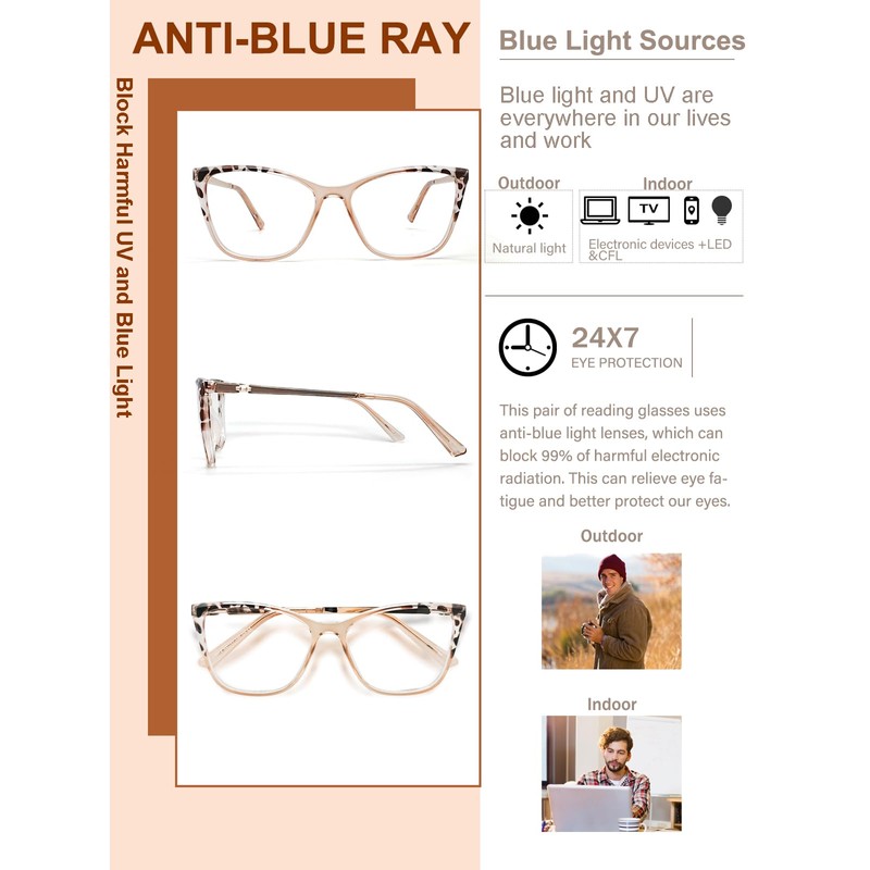 • Blue Light Blocking Reading Glasses-Electronic screens are unavoidable in daily life. Using anti-blue light lenses can better protect our eyes and relieve eye fatigue.