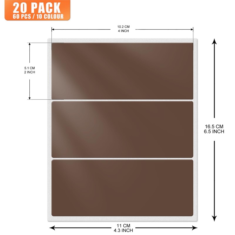 • Package Includes: 60 pieces 4 x 2” rectangular labels in 20 sheets, 3 labels per sheet.