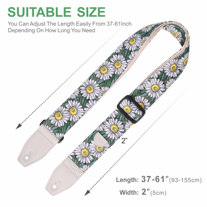 YIKOKO Guitar Strap 2", Cotton Print Floral Guitar Straps with Full Grain Leather End, for Bass, Electric and Acoustic Guitars, Free Strap Button, Strap Locks and Guitar Picks