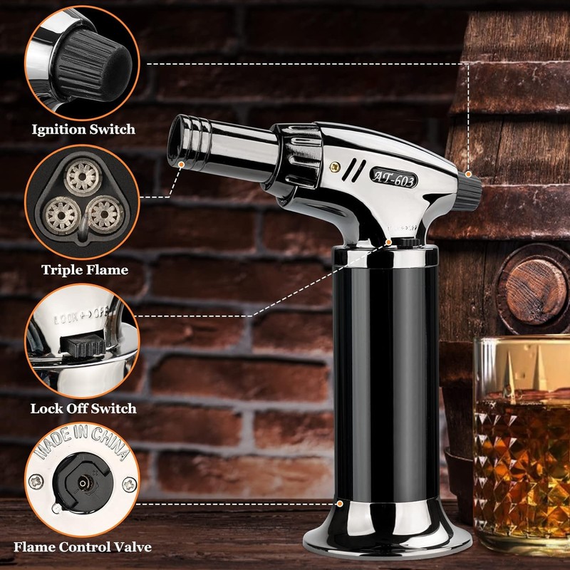 Yilador Butane Torch AT-603, Cocktail Smoker Torch with Safety Lock and Adjustable Flame, Refillable Lighter — Butane Gas Is Not Included