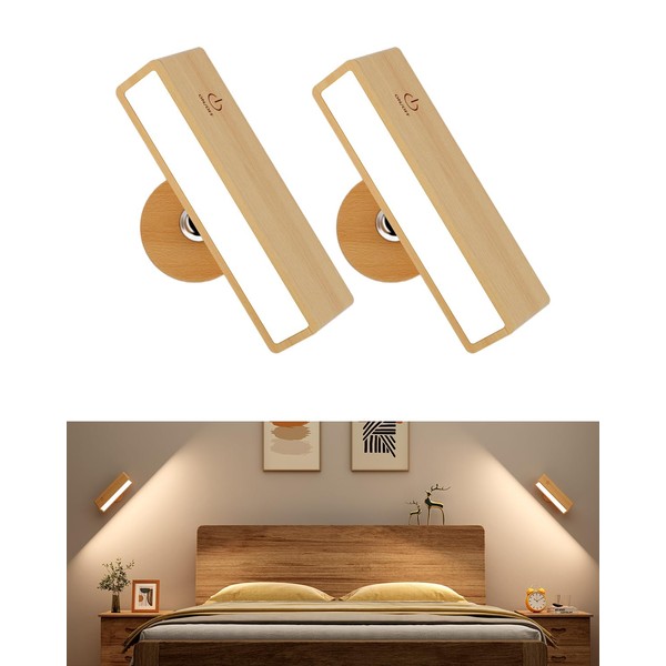 YiLaie Wall Sconces Set of 2 Rechargeable Wall Lights with 360 Rotation,Dimmable Battery Operated Wall Sconce,Magnetic Wall Light for Bedroom,Wireless Wall Mount Light for Picture,Living Room(2 Pack)