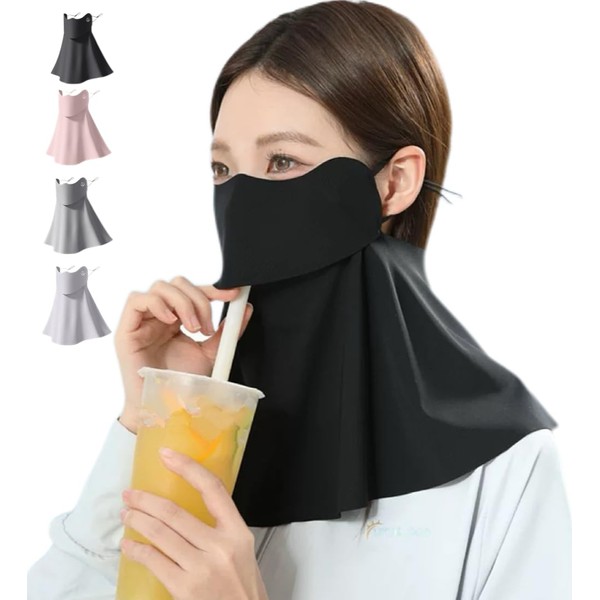 [YILAIYA] UVカットマスク 紫外線対策 2部式口開デザイン日焼け止め 立体 マスクUPF50+ 日焼け防止 フェイスカバー 夏 呼吸しやすいフェイスカバー 日除け ガード UVカットマスク男女兼用 伸縮素材 個別包装 フリーサイズ 紐調節可能 (ブラック)