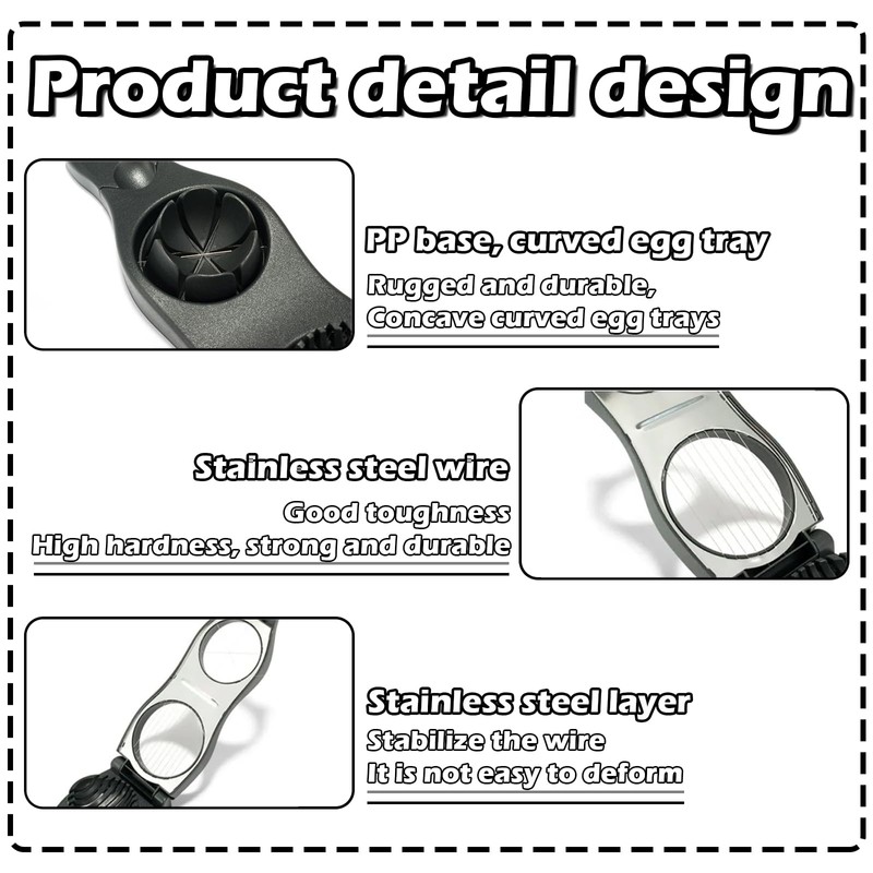 - Design Our egg slicer has a double design, cuts left and cuts right, making it a practical egg slicer
