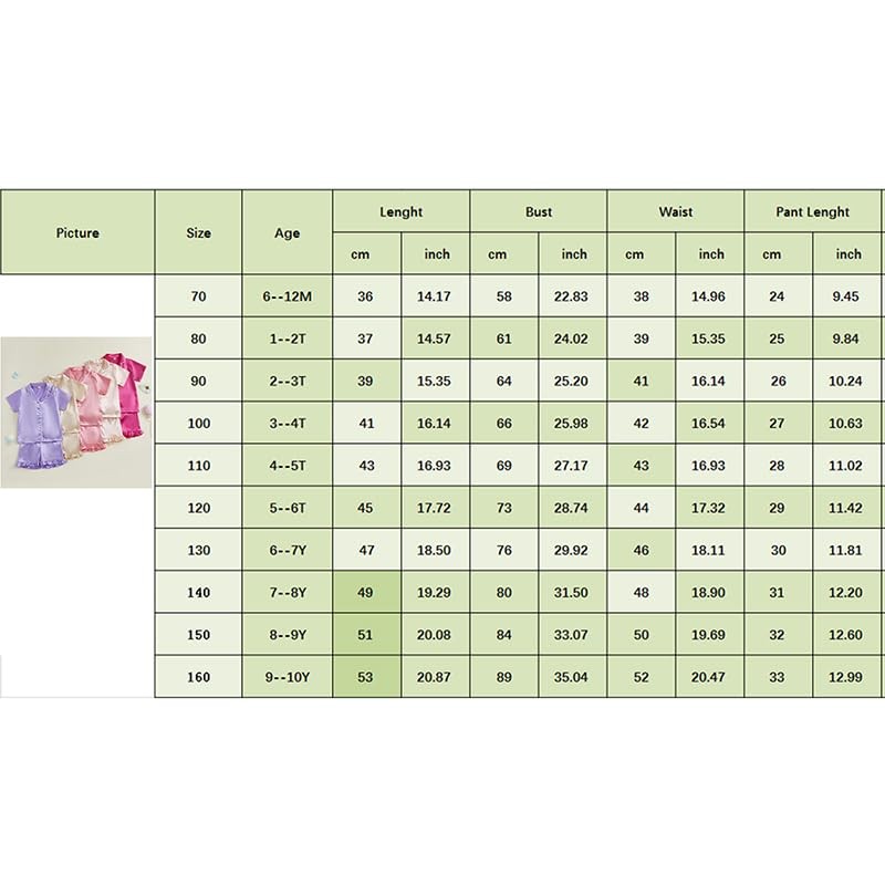 - Baby Girl Silk Pajamas Size Note: 6-12M, 1-2Y, 2-3Y, 3-4Y, 4-5Y, 5-6Y. The size is Asia size. Please check the size chart carefully before buying to get the clothes that fit your size