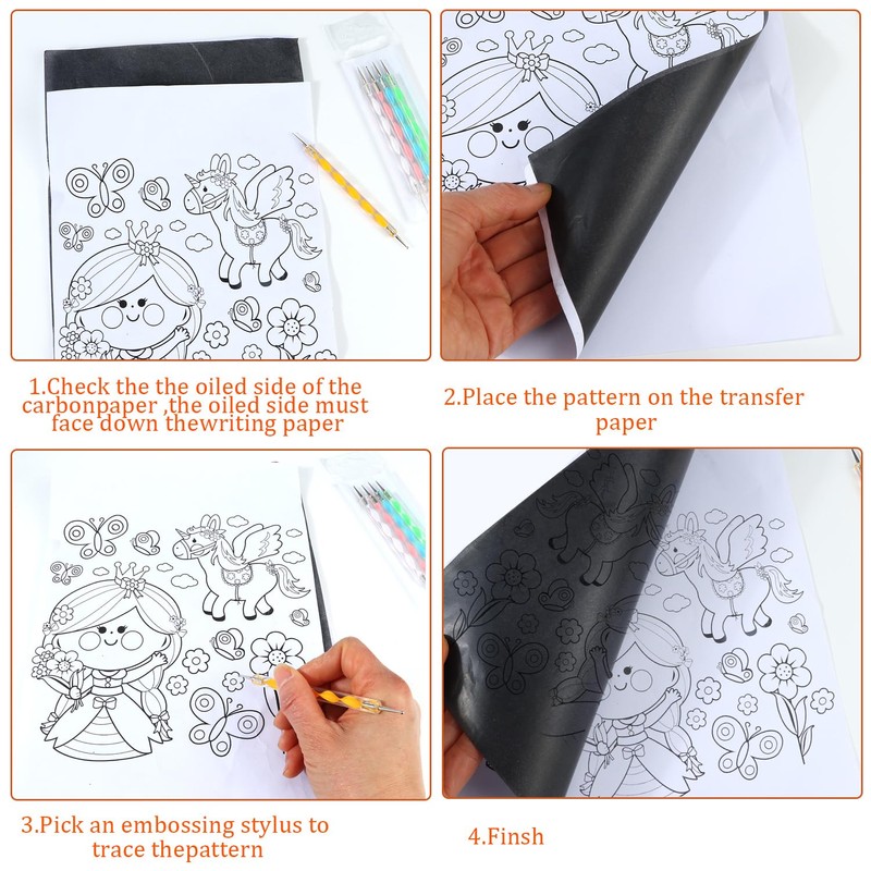 - Package includes: you will receive 200 sheets of black tracing paper + 5 pieces embossing pens set, enough for replacement or replacement, perfect for drawing, writing or nail art.