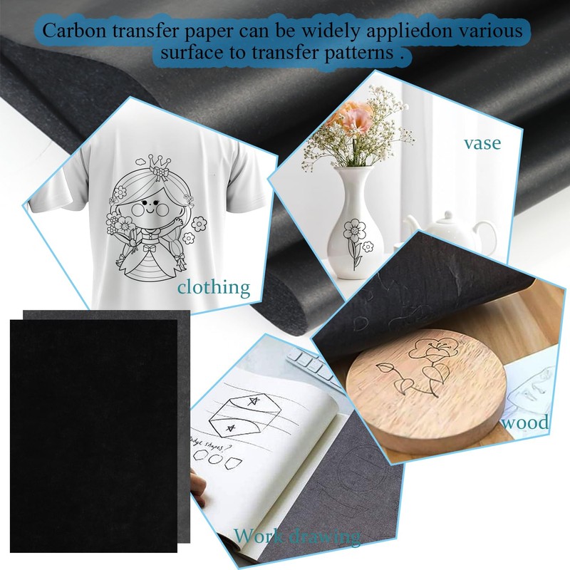 - Wide application: carbon paper sheets can be used for tracing and transferring designs, patterns or pictures to canvas, cardboard, paper, wood, glass, metal, ceramic, clay, lightweight fabrics and other surfaces. Ideal for home, office and arts and crafts projects.