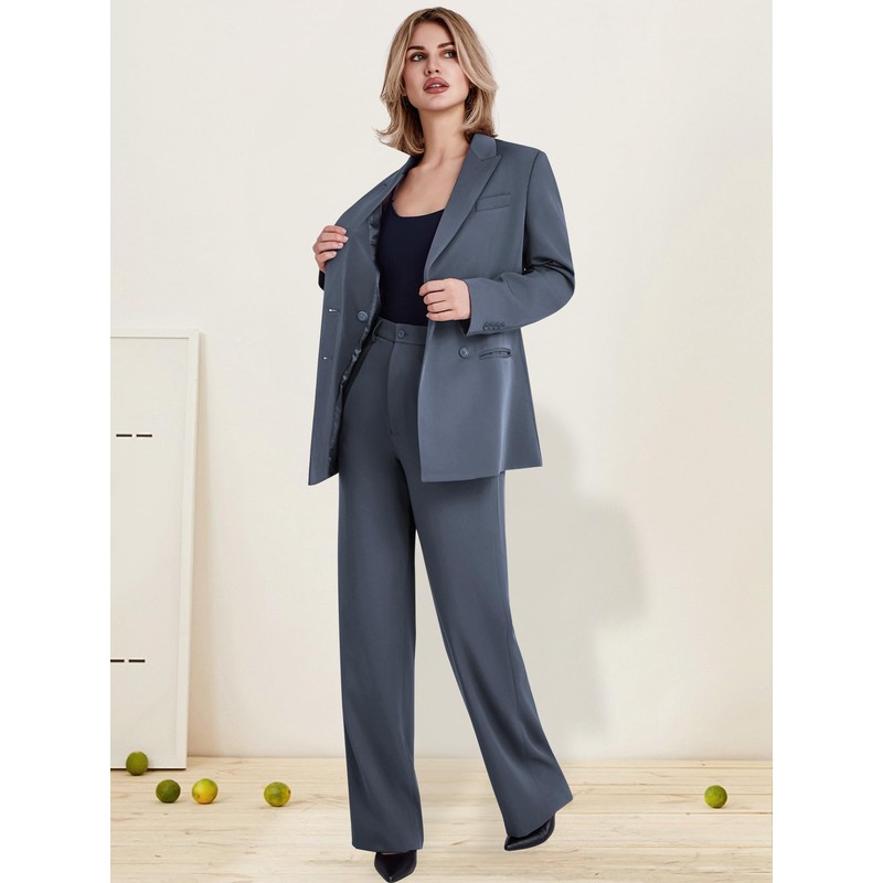 YILOTE Women's 2 Piece Suit Two Button Business Casual Office Work Outfits Dressy Blazer Wide Leg Pants Set Grey