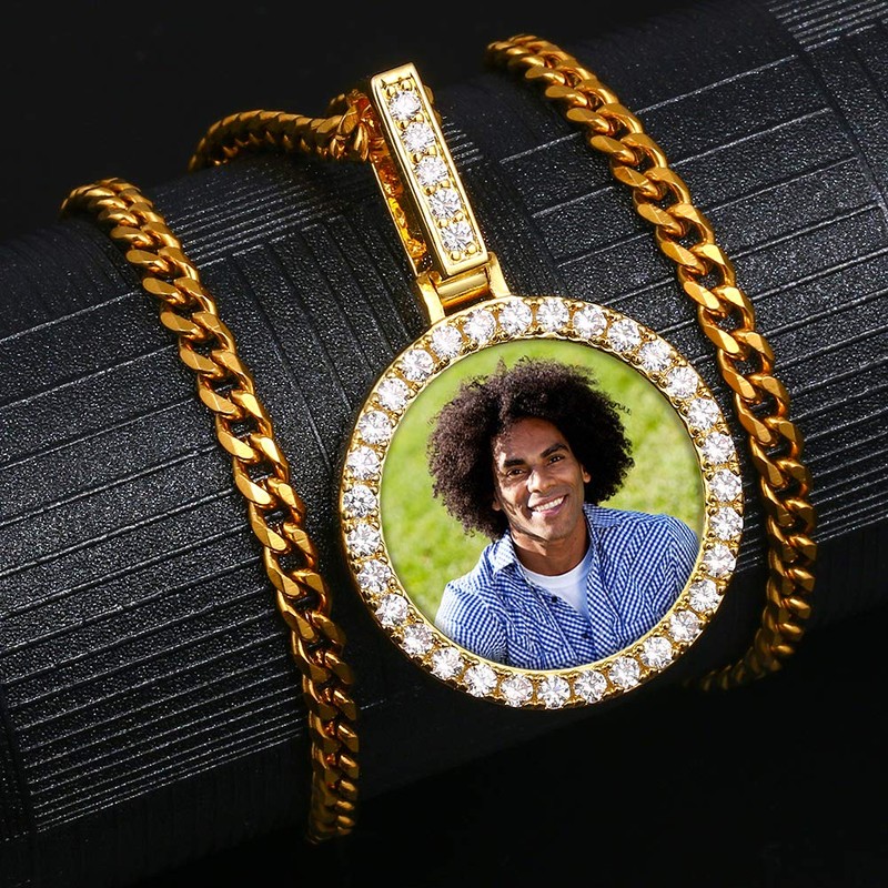 - Hip Hop Picture Necklace Material - The necklace with pic of loved one is made with AAA zircon+brass pendant and stainless steel chain, which are durable and sturdy to wear long time. Non-allergy, non-tarnish, high resistance to rust, corrosion and tarnishing. Memory photo necklace customized picture with protective covers on front surface that keep the photo away from moisture and scratch damage never fade.
