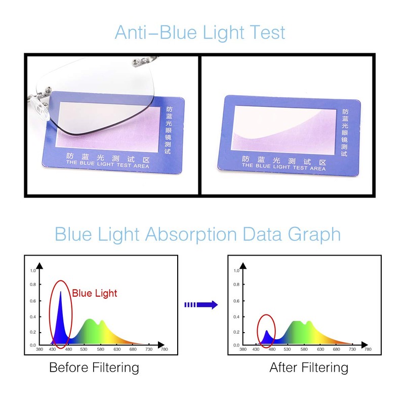 【Anti Glare Blue Light Blocking Glasses】▶High-definition blue light blocking lens filter out high energy blue ray from digital screen, clear vision and protect eyesight.alleviating discomfort and visual fatigue from long periods of computer use.7-layer anti-reflective coating to reflect and filter blue light, cut UV 400 (ultraviolet ray), reduce eyestrain and sleep better. High light transmittance with no noticeable yellow tint to prevent color distortion, minimize glare from digital screens
