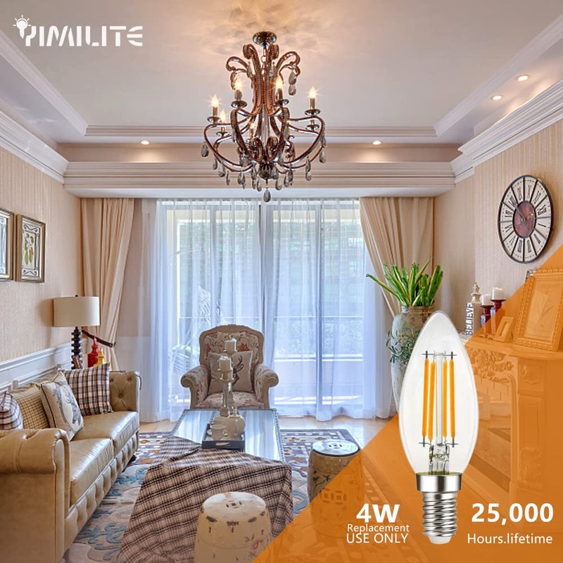 YIMILITE B11 E12 LED Candelabra Bulbs 4W(40 Watt Equivalent) 2700K Warm White 450lm dimmable C35 LED Filament Chandelier Light Bulbs Clear Glass Candle Lamp for Ceiling Fan Home Decor 12 Pack