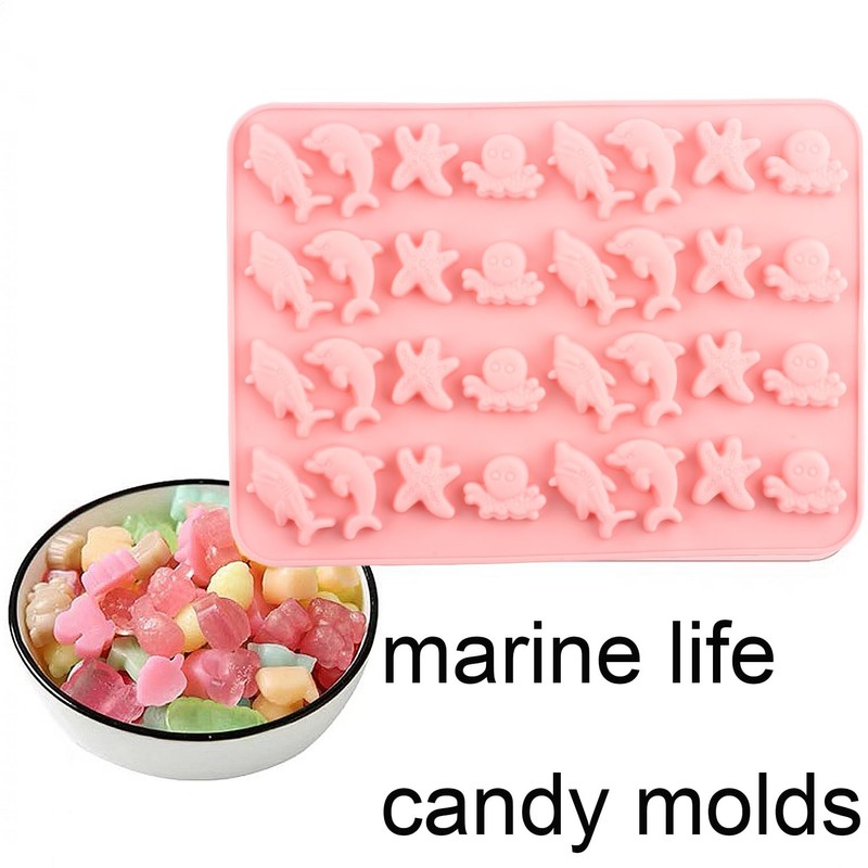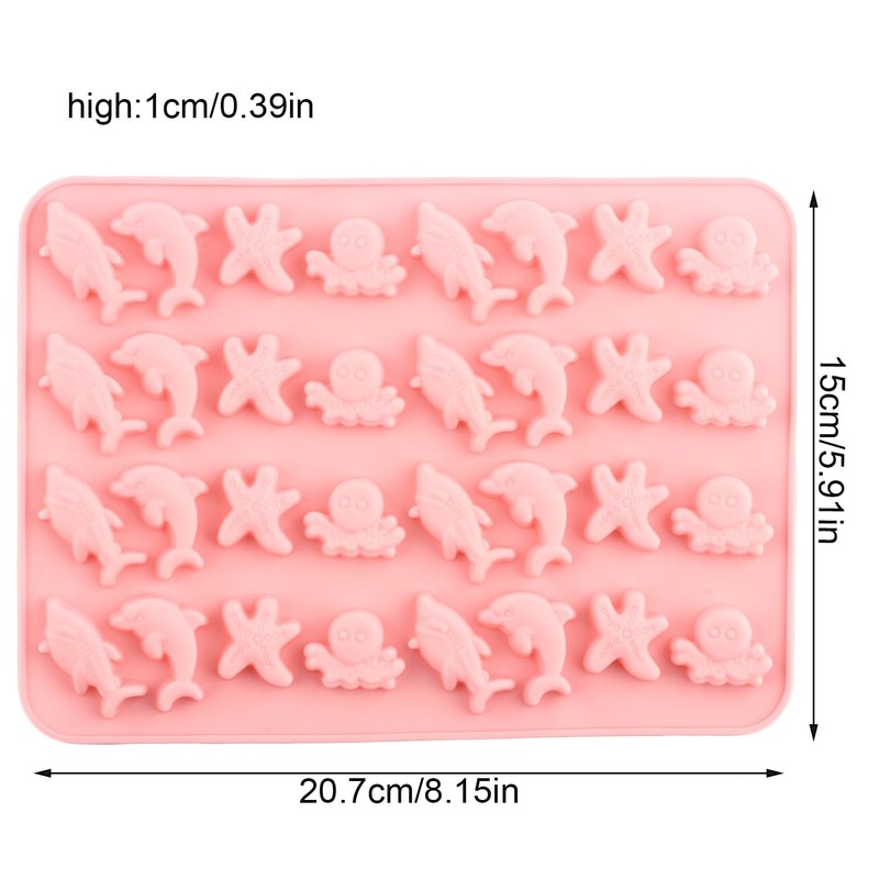 Size : 1 pcs 32-Cavity Ocean Animals Silicone Candy Molds.