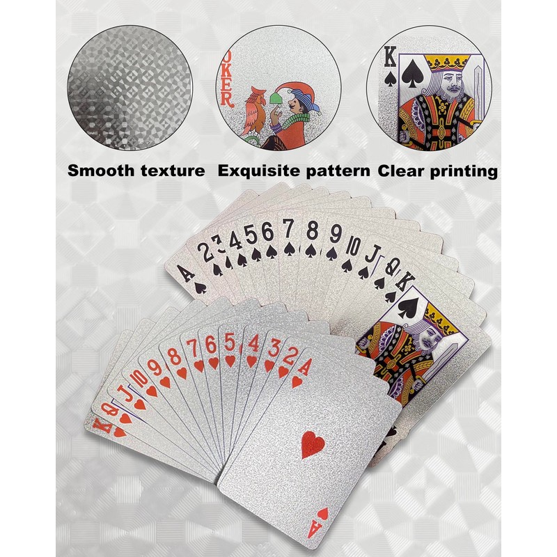 YIMINGOUFEI Foil Plastic Waterproof Poker Cards, Magic Game Playing Deck for Game Family and Birthday Party (Silvery Foil, Silvery)