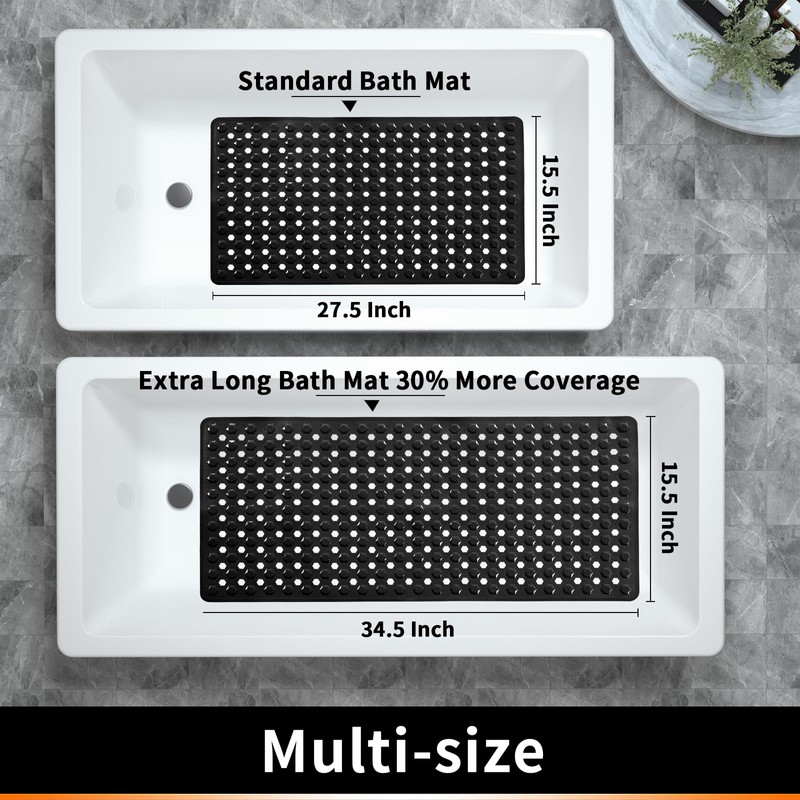 - LARGE SIZE: Let's say no to mats that make it difficult to cover your bathtub.Yimobra bath tub mat measure . inches x . inches and . inches x . feet for maximum coverage. Many other bath mats are smaller in size and leave parts of the tub exposed. BPA-free, latex-free, phthalate-free