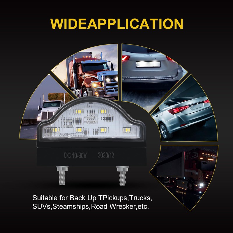 - Wide application: the universal license plate lights are suitable for 12/24V trucks, SUVs, trailers, motorcycles, SUVs, SUVs, SUVs, SUVs, vans, trucks, buses, boats and other different vehicle types.