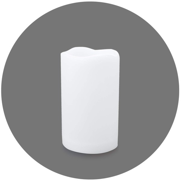 - Outdoor waterproof candle. The plastic battery candle is waterproof and designed for outside use to decorate your garden, yard, patio, swimming pool, or an outdoor activity such as a BBQ party. The resin candle can also be used indoor to decorate your fireplace and rooms. The LED candle is measured 3” in diameter, 5” in height and suitable for normal hurricane lanterns. Unlike wax candle, plastic candle never melts when used outside.