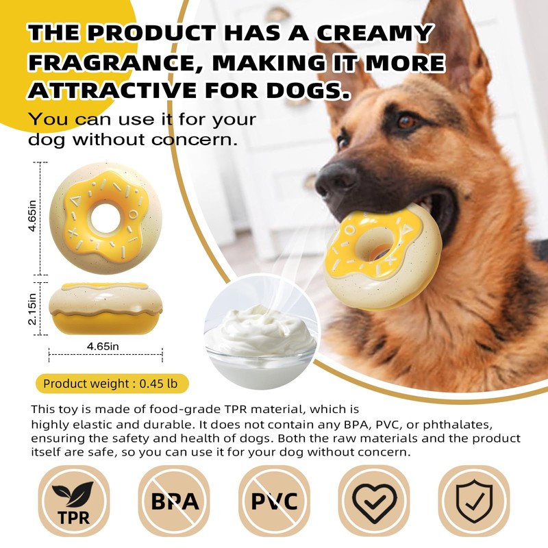 YINCORD Cute Donut Dog Toy for Aggressive Chewers Indestructible Squeaky Dog Toys with Creamy Fragrance for Medium, Large Breeds Heavy Duty Durable Dog Chew Toys (Yellow)