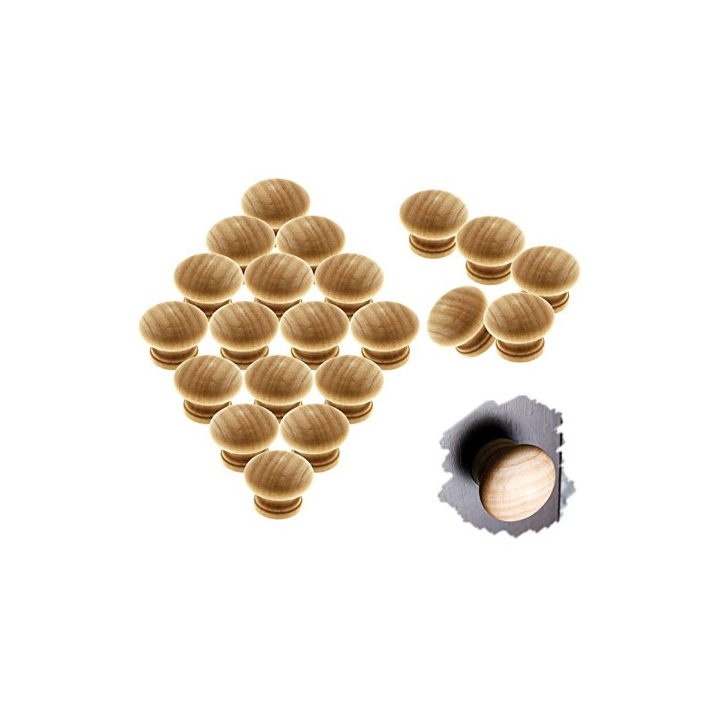 YINETTECH 20 Pcs 32mm Mushroom Shape Pre-Drilled Cupboard Drawer Wardrobe Door Pull Handle Natural Wood