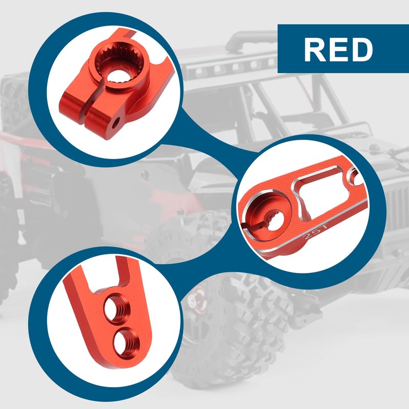 YINETTECH 4-Piece 25T Servo Horn Arm Aluminium Alloy Single-sided Steering Arm M3 Thread for RC Cars 1/10 Scale Compatible with Futaba Servo Motors Red