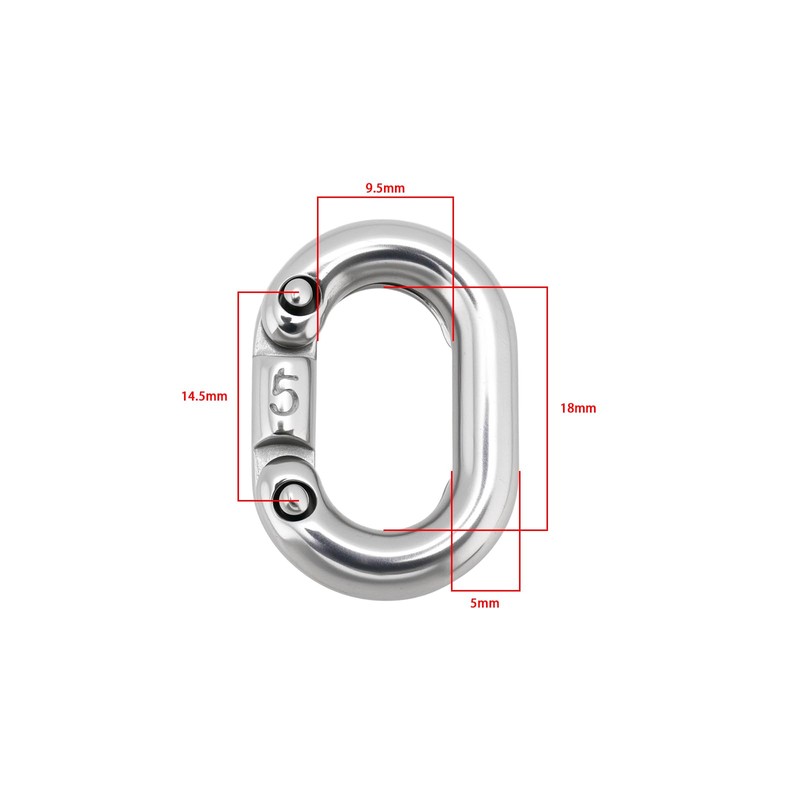 - Size: The thickness of the chain buckle is 5mm, and the internal size is 18x9.5mm, making it suitable for heavy-duty applications requiring strong, secure chain connections.