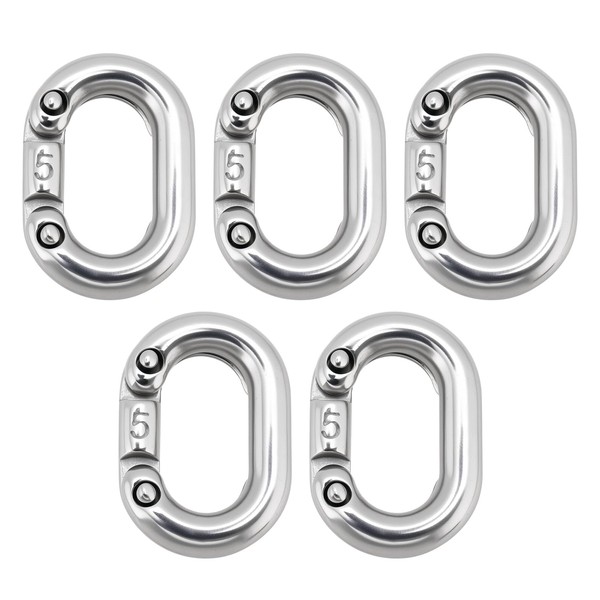 YINETTECH 5pcs 5mm 316 Stainless Steel Split Connecting Chain Links Heavy Duty Chain Link Connector C-Link Split Connecting for Chain Connection, Marine Grade
