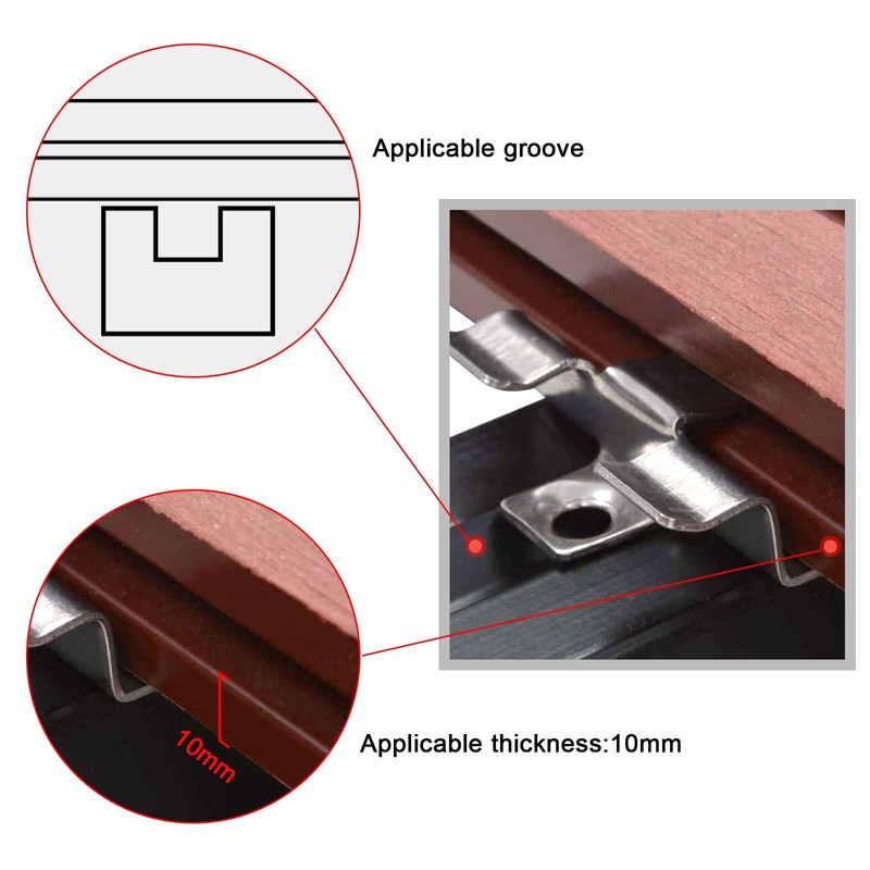 - [Material Thickness] : Suitable for grooved beams and wooden floors with a thickness of less than 10 mm, suitable for WPC wooden floors, other thicknesses are not recommended.
