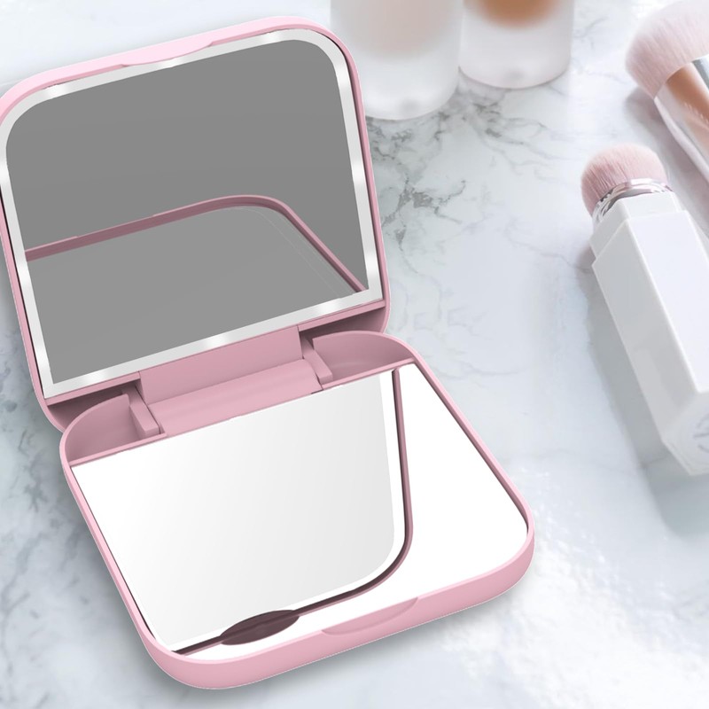 YingCheng Espejo compacto con luz, espejo de bolsillo LED de aumento 1X/3X, espejo de maquillaje de viaje para niña, pequeño espejo para bolso, bolsillo, plegable, de mano (rosa)