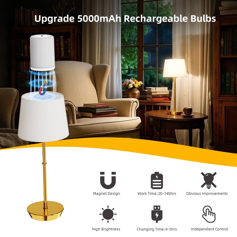 - 【Modern Wireless Design】This cordless table lamp is equipped with a high-quality 5000mAh rechargeable bulb that can be used for 20-140 hours. It features USB-C fast charging, taking only 4-5 hours to fully charge. With its stylish design, the lamp is cord-free, classic in appearance, and resistant to corrosion and rust, making it ideal for personal use or as a gift for friends and family.