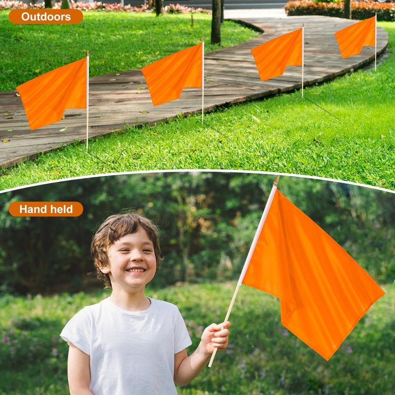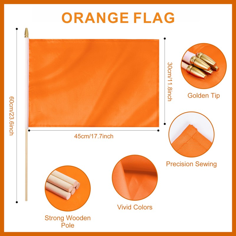 • Pack of 12: Get a bundle of 12 solid orange blank handheld flags, perfect for DIY graffiti or decorations.