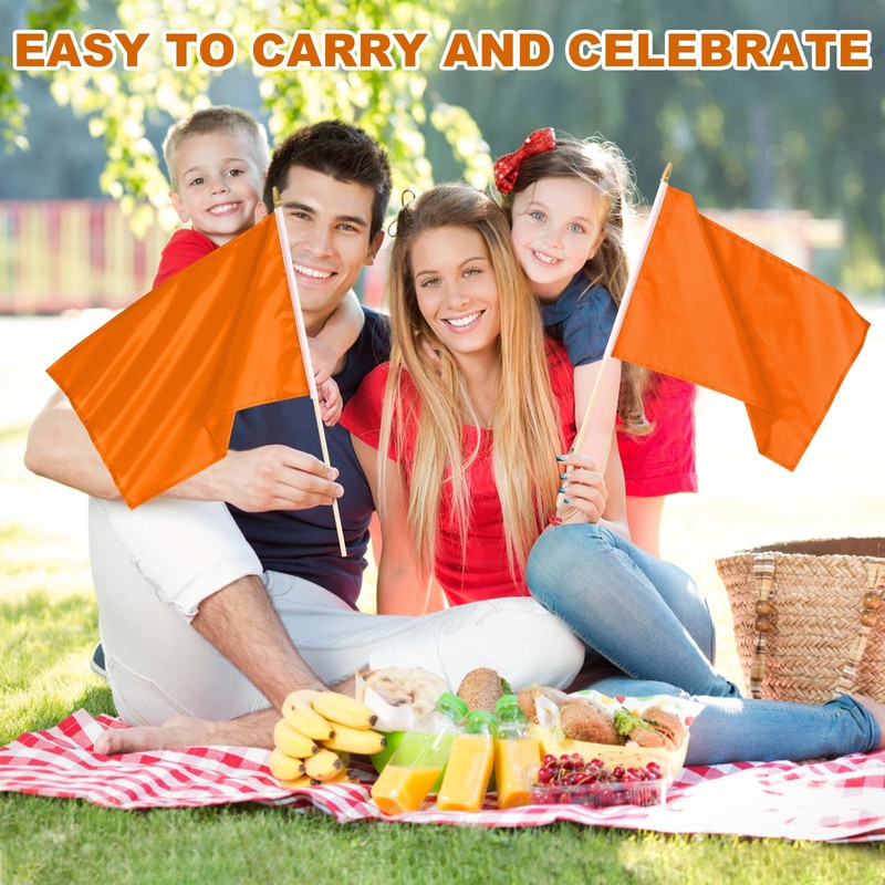 Yingnner 12 Pack Orange Stick Flags Small 12x18 Inch Hand Held Flags with 24 ...
