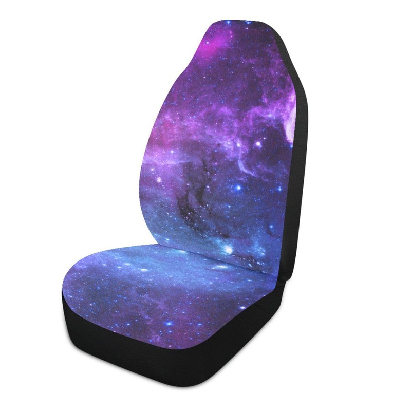 YINGQIGUAN 2 PCS Galaxy Car Seat Covers Deep Space Star Field Abstract Universe Blue Purple Galaxy Stars Nebula Design Vehicle Seat Protector Cushion Cover Universal Car Accessories for Truck Sedan
