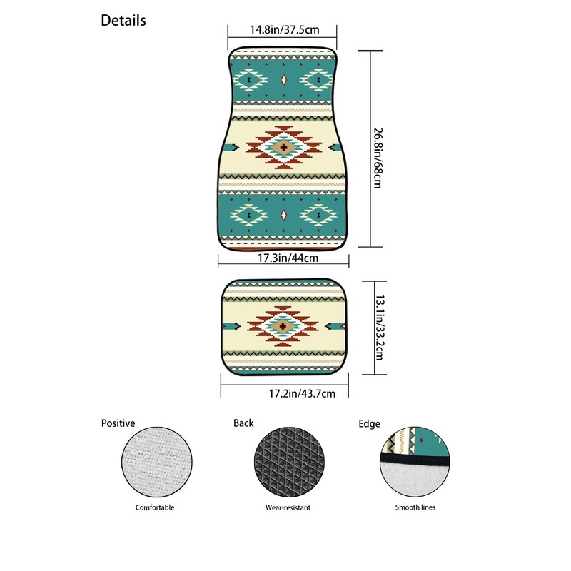 - Design: Our native American vehicle front rear carpets mats with practical design can be a great replacement for old and worn original mats; You don't have to worry about the dirt and mud from your shoes will stain your car or getting your car floor wet in rainy days; The stylish pattern not only decorates your car interior well but also brings wonderful visual experience