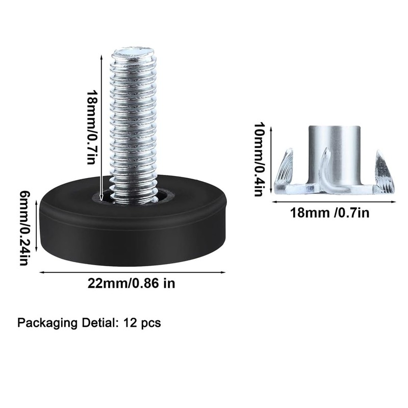 - 【Great Gadget for home】You will receive12pcs adjustable table chair leveler and 12pcs T-nuts, sufficient quantity could meet your daily use.